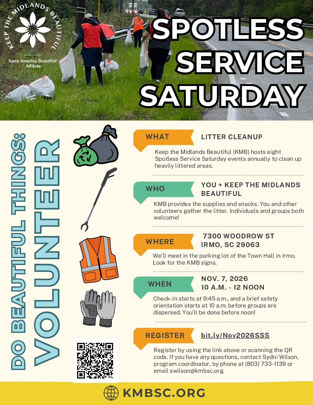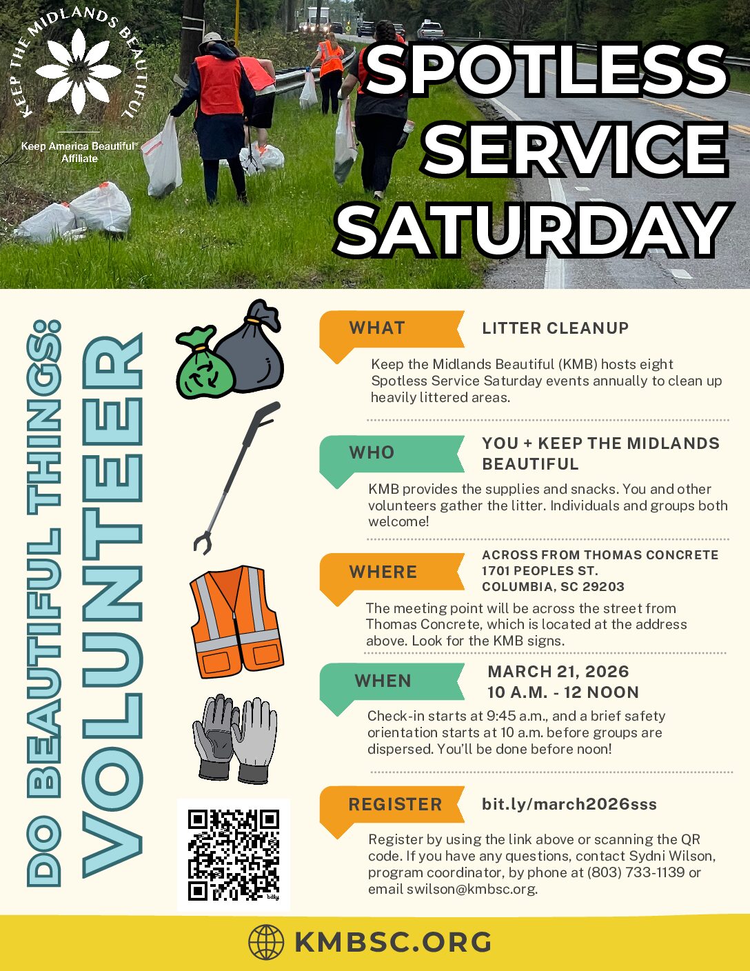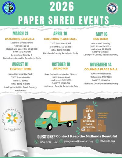 We work with our program partners at the Dept. of Transportation (SC DOT) and the City of Columbia Public Works Department to establish four weekends each year for Adopt-A-Highway and Adopt-A-Street litter cleanups. If your groups pick up litter on these weekends, or the week before, their crews will pick up the bags of litter you leave in piles on the roadways.